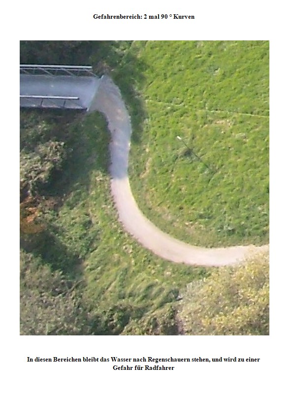 - Der etwas abschüssige Radweg wird unterschätzt, und die anschließende Kurve ebenfalls.
