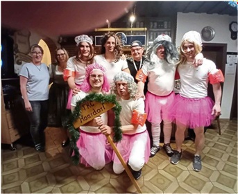 Und schon beginnt der zweite Teil des Starkbierfestes als Pfingstfest. Um Chris Weigl aus der Vorstandschaft des TKC zu verabschieden, tritt die Bauchtanzgruppe auf. Die Bauchtanzgruppe brachte das ganze Lokal noch einmal zum herzhaften Applaus und großen Lachen. Alle Darsteller liefen wieder zur Höchstform auf. Christian Knöckl übergab an die Wirtsleute Christa und Erhard für die Aufnahme bei den Proben ein Geschenk. Er würdigte Andrea Wagner und Beate Knöckl für die Einspielungen und für die Maske und Requisiten mit Blumen. Mit viel Insiderwissen und professionellen Auftritten ist es den Spielern gelungen, die Besucher zu unterhalten und sie zum Lachen zu bringen. Mit der Umstellung zur Sommerzeit blieb es manchem verborgen, wie spät es geworden war, als er sich auf den Heimweg machte.
